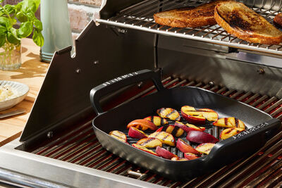 Go beyond the kitchen with the Alpine Outdoor Grill Pan – ideal for searing and griddling outdoors. Crafted from an Enameled Cast Iron range developed specifically for the outdoors, it delivers superior heat retention and distribution, enhanced performance and rich culinary heritage. The Enameled Cast Iron is completely encased in a rugged matte black enamel that is ready to use, easy to clean and requires no seasoning. It’s perfectly sized to fit on most grills, and nestable with other Alpine Outdoor items for compact storage. The raised loop handles make it easy to maneuver on the grates, while the low-profile design allows grill hoods to close. Durable and easy to clean, the Alpine Outdoor Grill Pan features a herringbone ribbed texture that is ideal for preparing flaky fish and tender meats.