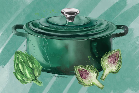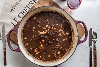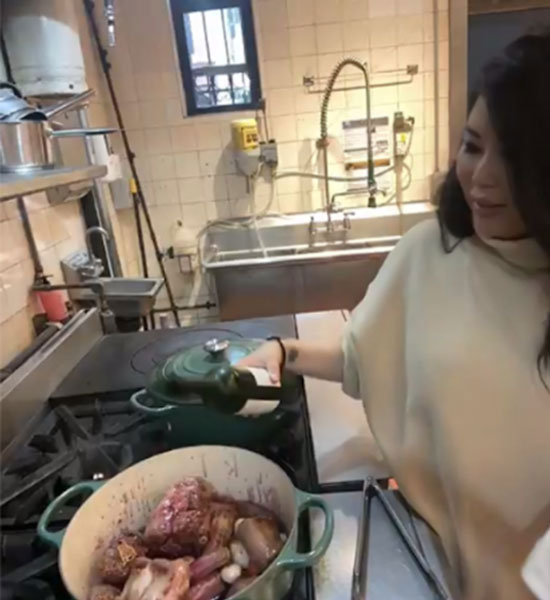 Following their chat, Angie demonstrated how to make Oxtail Bourguignon, her riff on the classic Burgundian stew that Jacques and Julia have taught countless people how to make over the years. Angie prepared everything in her Le Creuset Dutch ovens and gave everyone a glimpse of the brand new Le Creuset color, Artichaut. It’s a dreamy vibrant green that perfectly captures the spirit of spring, friendship, and French cuisine.