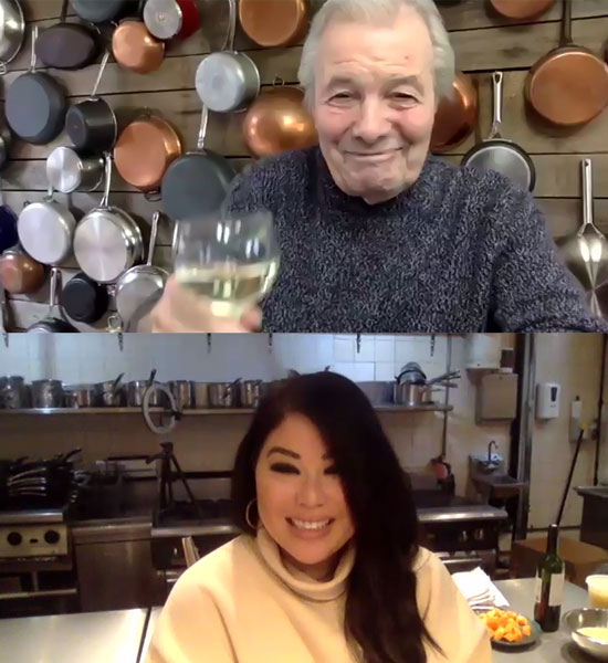 Jacques and Angie’s conversation took place on Zoom, with Jacques in his Connecticut kitchen, spotless pots and pans hanging on the wall behind him and a glass of white wine within reach, and Angie in the brand new kitchen space for Les Trois Chevaux. Jacques reminisced about his move to America; his $25-a-month apartment; and his first encounter with a not-yet-famous Julia Child. “When I met Julia, no one had ever heard of her,” he recalled. The two bonded over a similar world view, Julia’s joie de vivre, and her fluent French. “Julia loved to eat, loved to drink, loved to have a good time.”