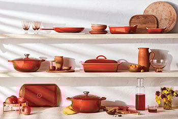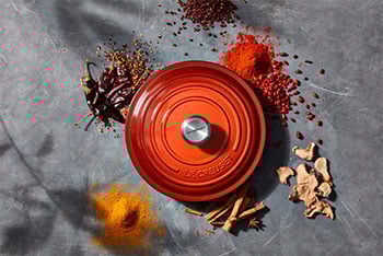 A simmering spicy hue, so rich, so warm, it creates visual flavor wherever it goes. Le Creuset introduces Cayenne – this fiery beauty has a zest all its own, a perfect companion to our iconic Flame, a nuanced partner to our passionate Cerise. Or a spirited seasoning to liven up neutrals. It’s modern, it’s sensuous, an irresistible siren to spice things up, kitchen to table, feast to feast.
