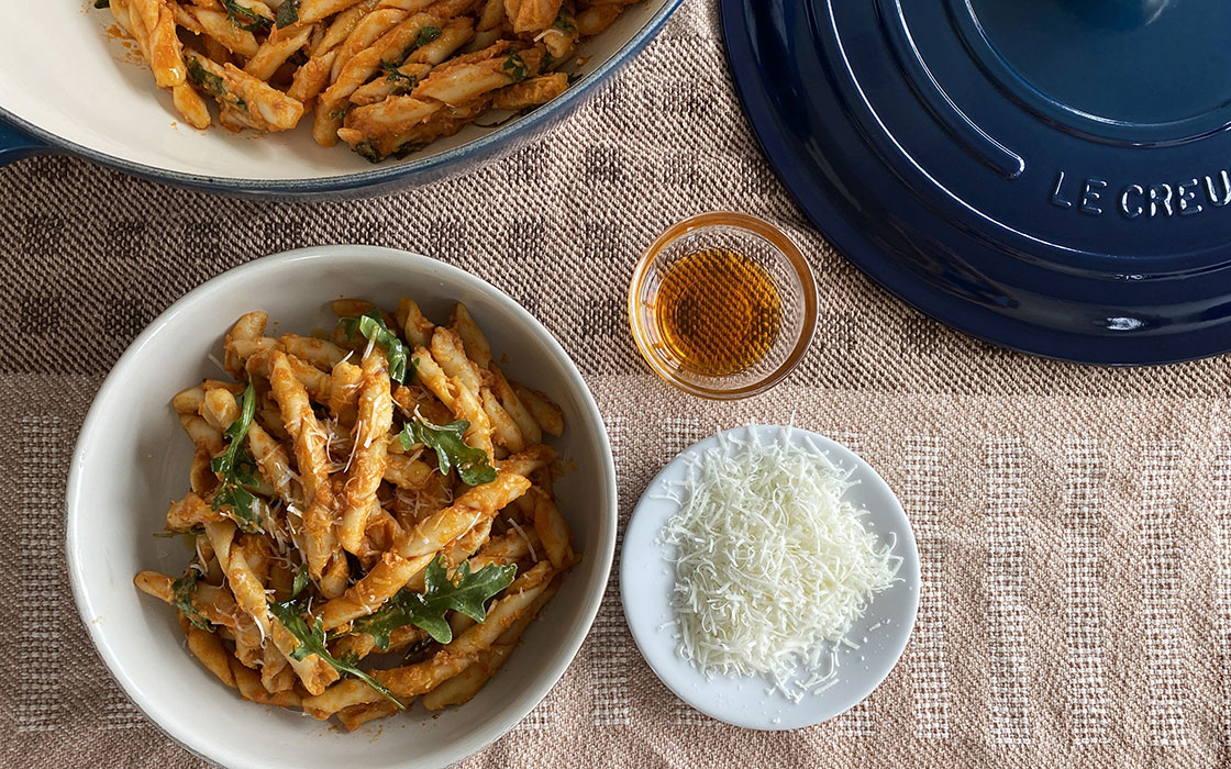 - Dutch Oven, Chef’s Oven or Skillet – For making sauces and tossing the pasta with the sauce.