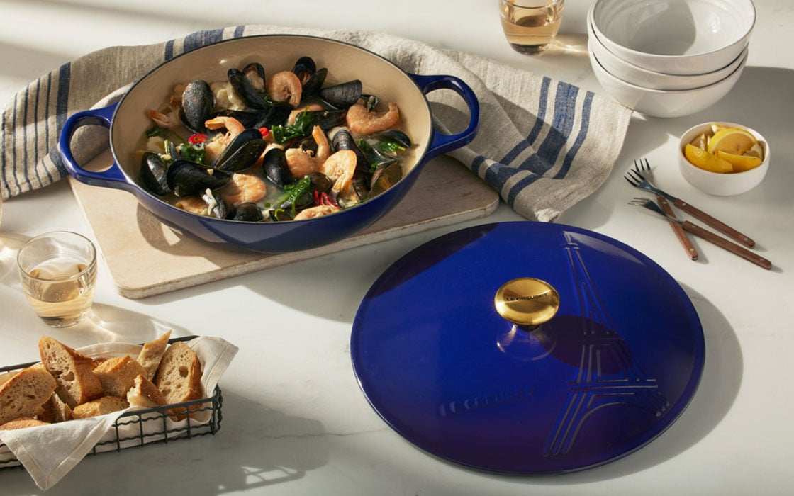 Inspired by our French heritage, the limited-edition Eiffel Tower collection features an elegant, embossed relief of one of the most iconic monuments in the world. The collection includes enameled cast iron cookware and stoneware baking dishes in colors reminiscent of the French flag. It’s the perfect way to bring a touch of chic Parisian charm to your kitchen and table. Bon appetit!