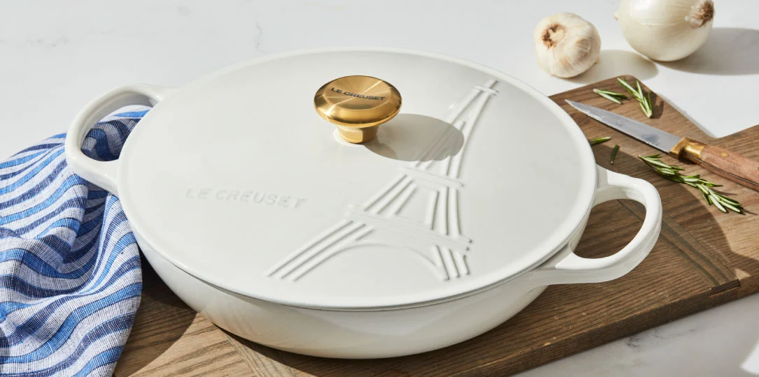 Inspired by our heritage, the limited-edition Eiffel Tower Signature Braiser features an elegant, embossed relief on the lid of the iconic French monument, and is finished with a beautiful, brushed gold knob. It’s the perfect way to bring a touch of chic Parisian charm to your kitchen and table –  a versatile every day shape for braising, sautéing, steaming, casseroles, serving and more.