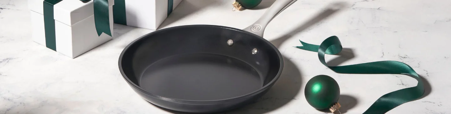 Our Essential Non-Stick Ceramic cookware features a heavy-gauge aluminum core for excellent heat distribution and retention, while the advanced ceramic coating easily releases food and quickly wipes clean.