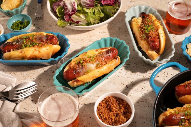 French onion soup meets the backyard hot dog in this rich, savory upgrade. Sweet, caramelized onions, nutty Gruyère and a sprinkle of buttery toasted breadcrumbs echo the classic soup, while a quick honey Dijonnaise adds a sharpness and sweetness that balances it all out. Melt the cheese right on the grill for bubbling, golden results, then finish with fresh chives for brightness.