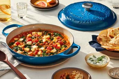 The Olive Branch Signature Braiser is embossed with a refined olive branch motif inspired by the sun-drenched fields of Provence that is a sophisticated addition to any kitchen. Both functional and beautiful, it’s uniquely designed to provide steady, even heat to transform tough cuts of meat and hearty vegetables into tender, flavorful dishes. The wide base allows ingredients to be placed in a single layer for searing without crowding; once liquid is added, the heavy lid circulates steam to lock in moisture. The versatile shape is also perfect for sautéing, shallow frying, steaming, casseroles and serving at the table.