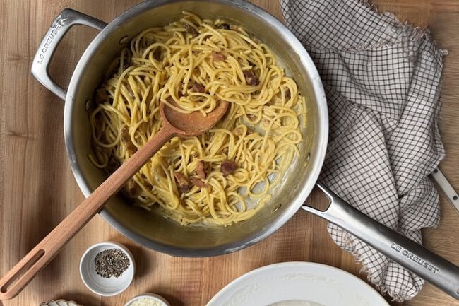With just a handful of ingredients, spaghetti alla carbonara lets quality shine, from silky egg yolks to sharp Pecorino Romano and crisp guanciale. Pork is rendered to golden perfection before everything is brought together for a sauce that’s rich and glossy. Finished with plenty of freshly toasted black pepper, it’s a deeply satisfying dish that proves simplicity, when done well, is anything but ordinary.