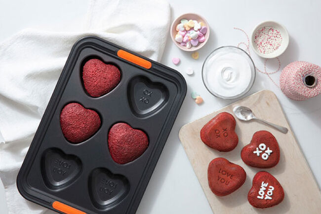 A bit of cocoa and red food coloring create the classic red velvet look, while a drizzle of white chocolate adds an elegant touch. These little cakelets are a lovely presentation for Valentine’s Day, or anytime you want to treat your sweetie to a little dessert love.