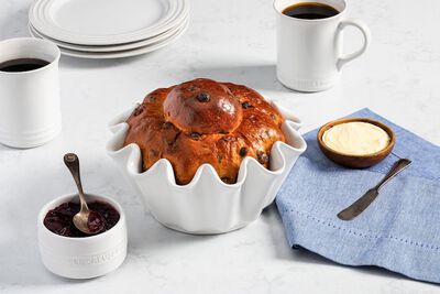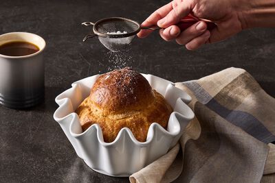 Inspired by vintage bakeware, this charming brioche pan features elegant, ruffled edges that lend a touch of timeless sophistication to your creations. Designed for superior heat distribution, it ensures an even bake every time, delivering perfectly puffed, golden brioche with a tender, flaky texture. Whether you’re crafting a classic brioche loaf or experimenting with sweet or savory variations, this pan offers both functionality and style, making it a staple for any baking enthusiast. Its durable construction and nonstick surface make releasing and cleaning effortless, so you can focus on enjoying your beautifully baked masterpiece.