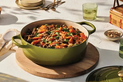 Le Creuset’s Signature Round Wide Oven produces delicious results every time, and is a versatile tool for braising, roasting, baking or frying that easily goes from stove to oven to table. The unique wide base is ideal for searing and browning meat and vegetables without crowding, and makes it easy to serve soups and casseroles directly from the pot.  The generous size makes it perfect for family meals and entertaining, or use it for batch cooking and meal prep to free up precious time on busy days.