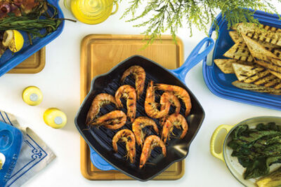 The enameled cast iron Signature Square Skillet Grill brings the delicious flavor of outdoor grilling conveniently indoors. The interior surface is finished with a black satin enamel that eliminates the need for the traditional seasoning and maintenance of raw cast iron, and the enamel develops a natural patina over time that is ideal for searing. The high ridges create perfect sear marks, and allow excess fat and grease to drain away from the food. Loop handles make it easy to maneuver a full pan, and the spouts on two sides allow for drip-free pours.