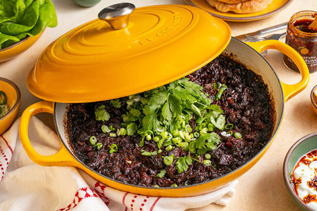 This amazing braised lamb recipe is loosely inspired by a dish at Majordōmo in Los Angeles which is based on Sichuan toothpick lamb. Our chef friends at Momofuku Culinary Lab were kind enough to share it with us. Their advice: get both flatbread and lettuce, and you have lots of ssäm-building opportunities for friends and family.