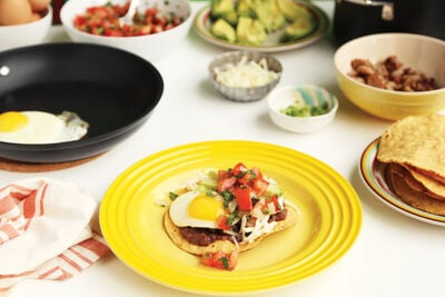 Now 4x stronger, Le Creuset’s Toughened Non-stick PRO fry pans deliver superior results and everyday ease of use for everything from searing fish to sauteing vegetables and making omelets. A versatile kitchen staple, the non-stick fry pan features a textured triple-reinforced coating that is ideal for browning and searing, with or without oil, and easily wipes clean. Safe for dishwasher, oven and metal utensils, Le Creuset’s non-stick is the choice for mastering flavorful meals from stove to oven to table.