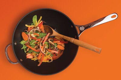 Le Creuset’s Toughened Non-stick PRO Stir-Fry Pan delivers superior results and everyday ease of use. The deep bowl shape is ideal for sautéing and stir-frying meat and vegetables, tossing noodles, making sauces and even deep frying.  Designed for versatility, it features a textured triple-reinforced coating that browns and sears exceptionally well, with or without oil, and easily wipes clean. Safe for dishwasher, oven and metal utensils, Le Creuset’s non-stick is the choice for mastering flavorful meals from stove to oven to table.